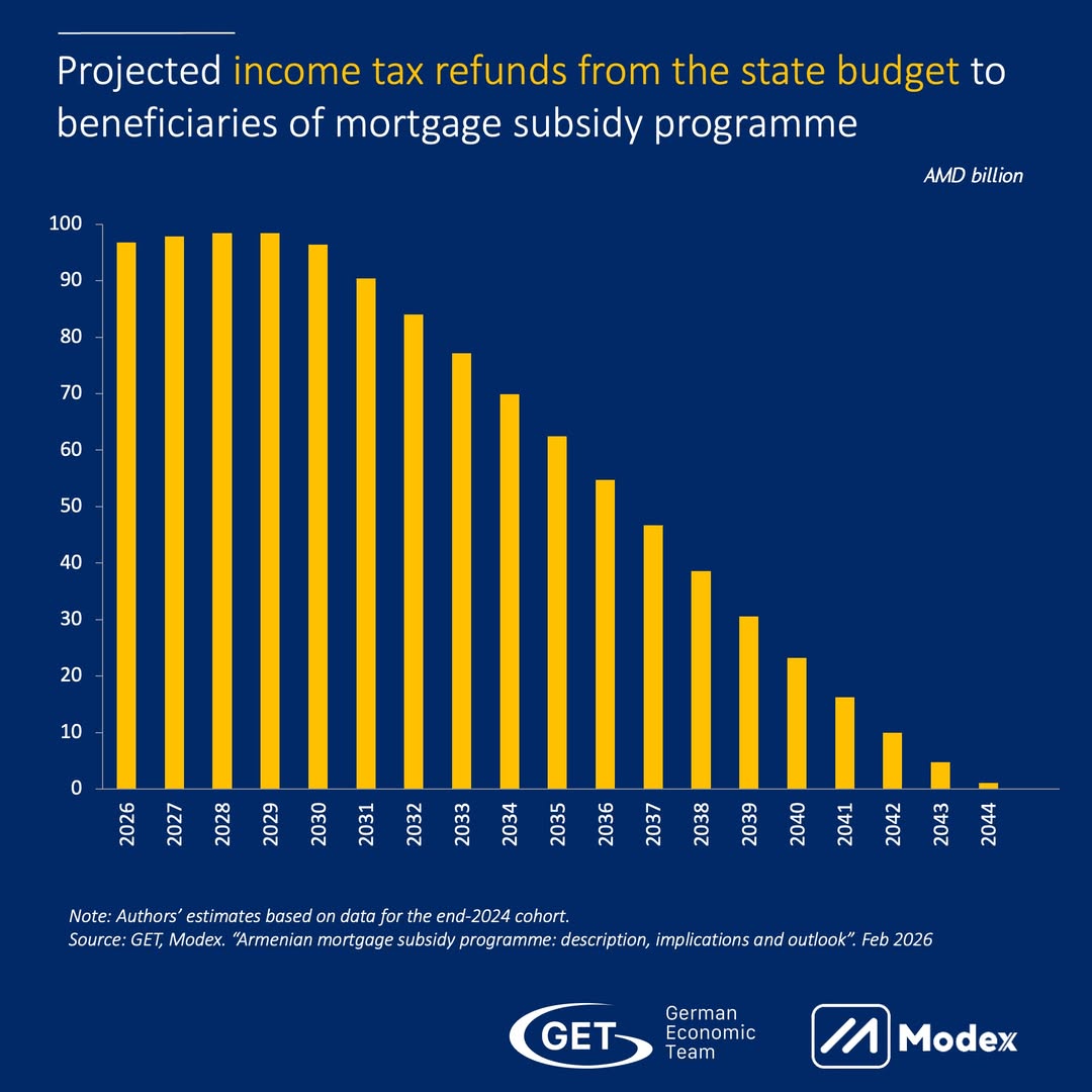 2015-2025 թվականներին «Հիփոթեքային վարկի վճարված տոկոսների գումարների վերադարձ» ծրագրից օգտվողներին պետական բյուջեից վերադարձվել է 305 միլիարդ դրամ։ German Economic Team (GET) ծրագրի շրջանակում Berlin Economics և Modex ընկերությունների գնահատականների համաձայն՝ ծրագրի շահառուներին 2026-2044 թվականներին ՀՀ պետական բյուջեից վերադարձվելու է շուրջ 1 տրիլիոն 98 միլիարդ դրամ։ Ընդ որում, խոսքը վերաբերում է մինչև 2024 թվականի վերջի դրությամբ […]